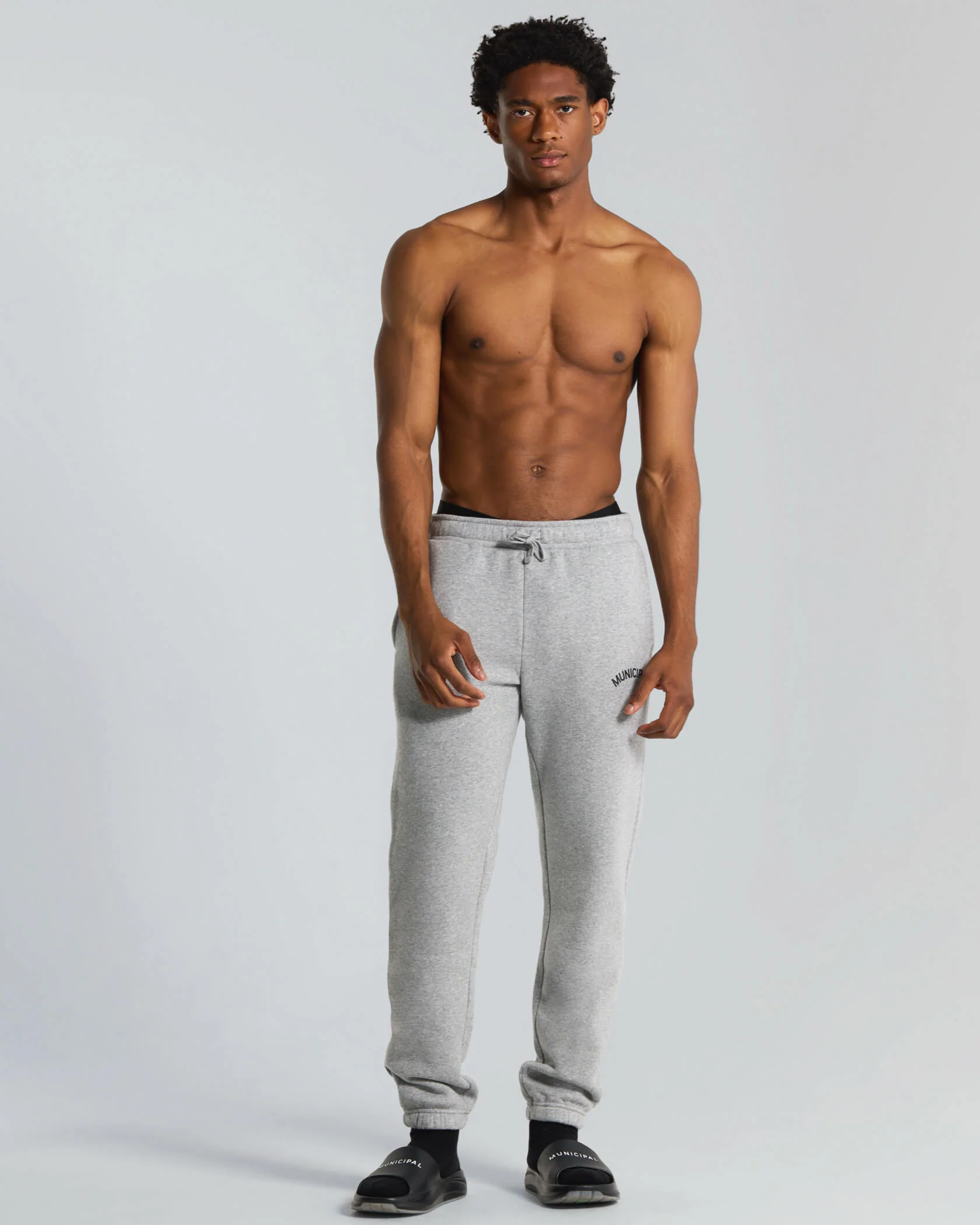 • Arched MUNICIPAL wordmark at left thigh